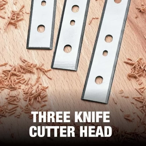 The 13 in. Three Knife, Two Speed Thickness Planer is powered by a 15 Amp motor for managing large cuts in wider materials. Three-knife cutter head with 10000 RPM and feed speed options for 96 or 179 CPI provide optimal performance. Includes infeed and outfeed tables and extra set of knives.